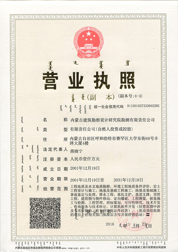 - 內(nèi)蒙古建筑勘察設(shè)計(jì)研究院勘測(cè)有限責(zé)任公司,是全國(guó)首家完成 轉(zhuǎn)企建制的省級(jí)建筑勘察設(shè)計(jì)單位。公司前身為內(nèi)蒙古建筑勘察 設(shè)計(jì)研究院勘測(cè)分院, 成立于1954年 ,經(jīng)過六十多年的發(fā)展, 現(xiàn)已成為全區(qū)技術(shù)力量雄厚、專業(yè)設(shè)置齊全的集巖土工程勘察 、 設(shè)計(jì)、治理、檢測(cè)、監(jiān)理、咨詢、水文地質(zhì)勘查、工程測(cè)量、科 研為一體的綜合性企業(yè) ... ... [查看詳情]