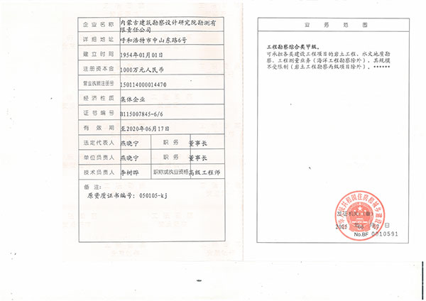 工程勘察類甲級(jí)證書
